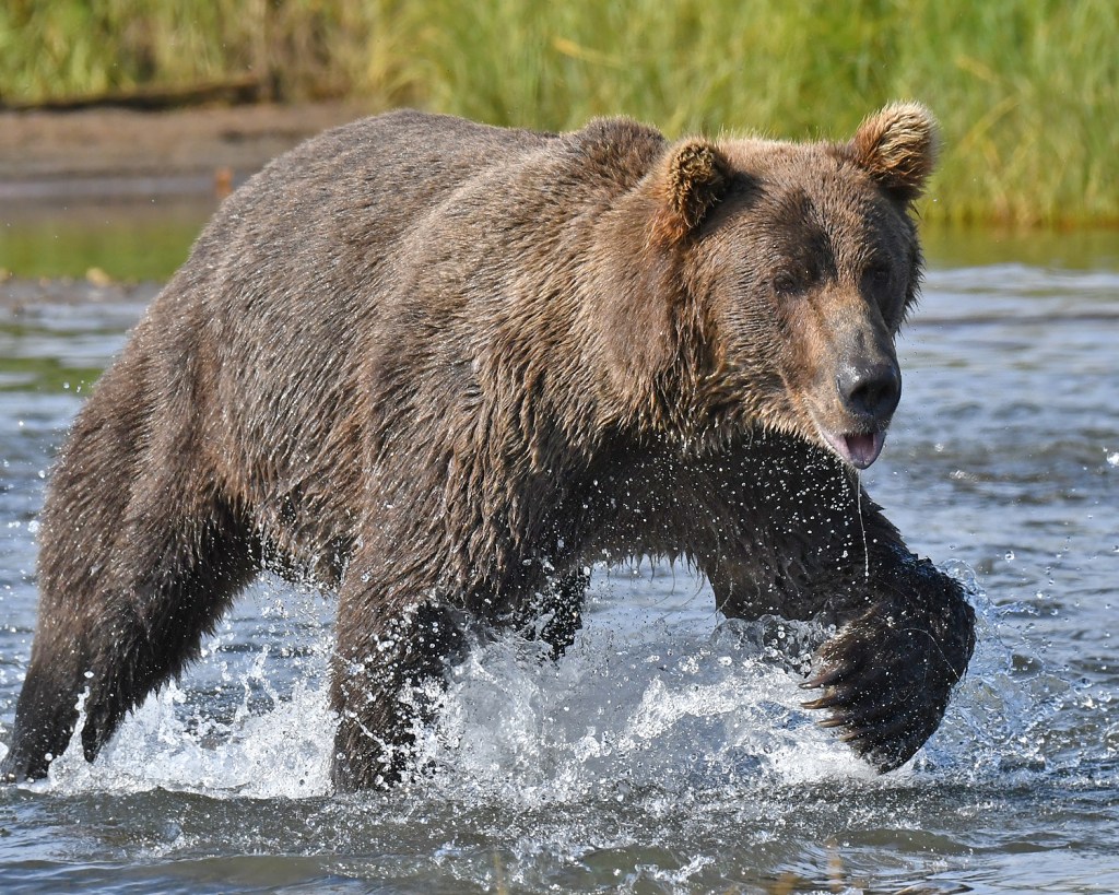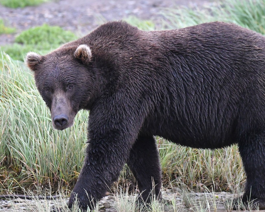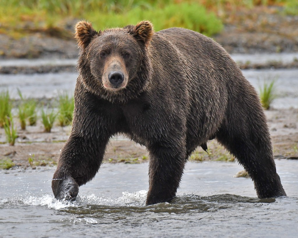 The term “brown bear” is the common term for bears found in coastal areas. Their habitat includes rich grassland and salmon filled streams offering a bountiful food source. You will find “brownies” in coastal areas of Alaska, like Lake Clark National Park or Katmai National Park. Brown bears typically feast on fatty salmon in the summer, as well as clams and sedge grass. Their consistently plentiful food supply allows them to grow larger than grizzlies and appear to be a bit more fat and happy. They will still violently defend their cubs and their space, but they don’t generally see people as a meal or competition.