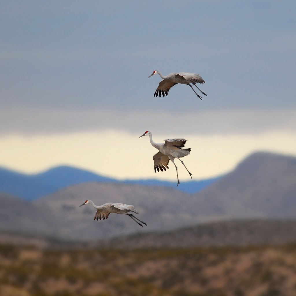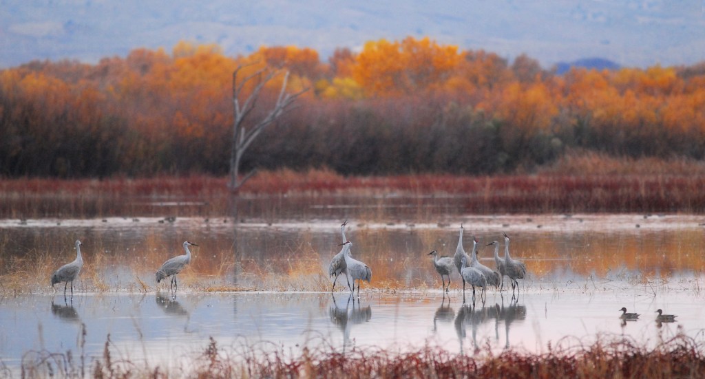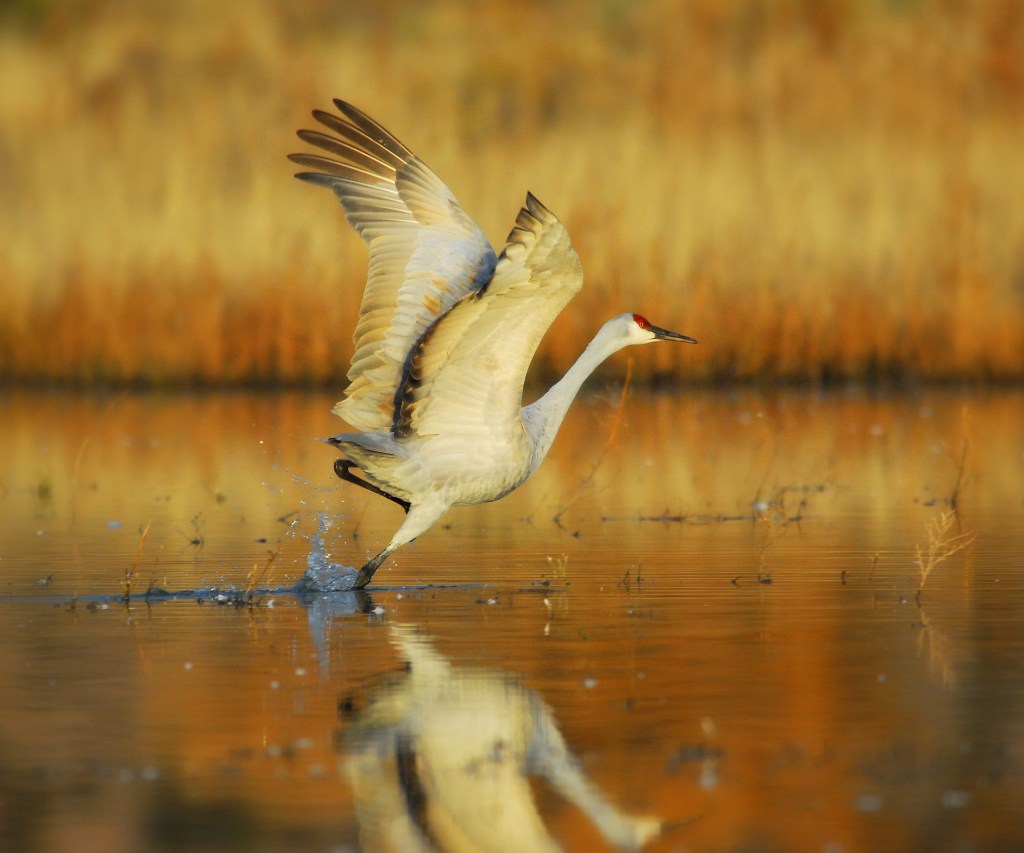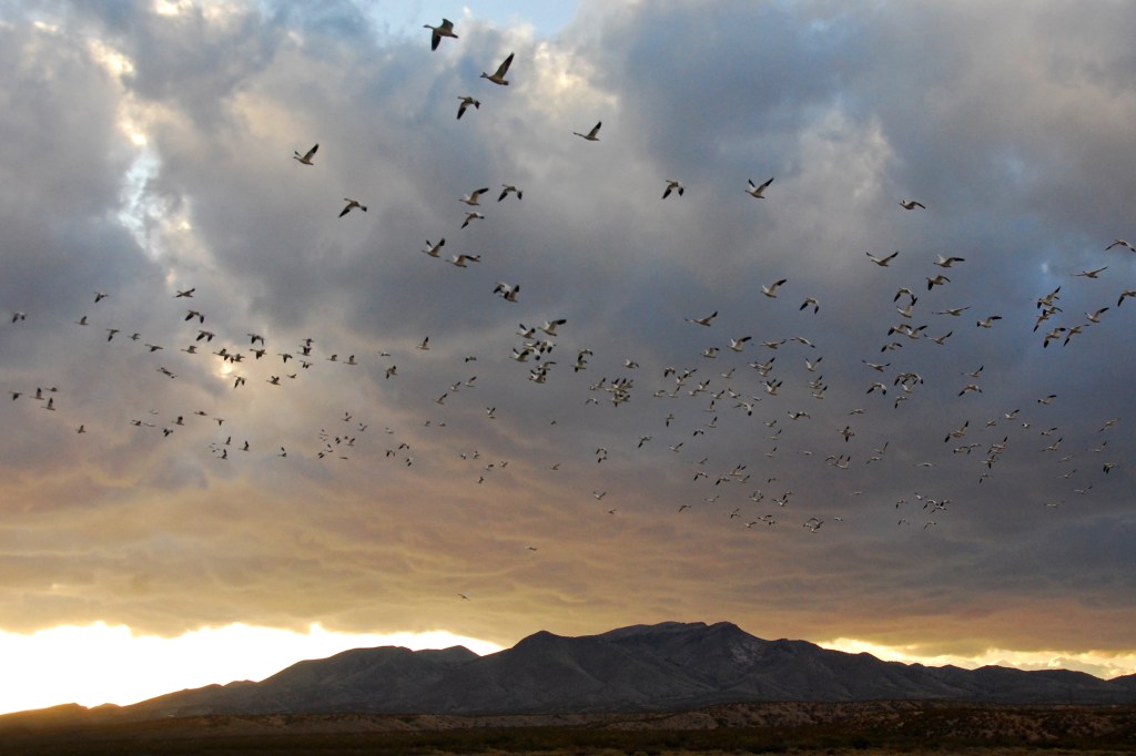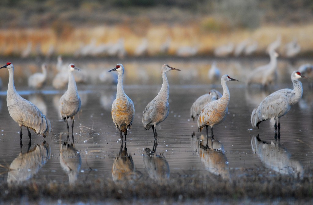 Bosque Del Apache is another truly magical destination. This preserve is located just south of Socorro New Mexico. The Chupadera Mountains to the west and the San Pascual Mountains to the east provide marvelous backdrops for photos and there’s something very special about that southwest light. Beginning around the end of October, thousands of Snow Geese, Ross’ Geese, and Sandhill Cranes migrate from northern climes and spend the winter in these marshes. In the evening, they congregate in water to protect themselves from predators. Near dawn, the geese take off en masse in search of fields throughout the Middle Rio Grande Valley to feed for the day. Smaller groups of Sandhill Cranes then leave the safety of the water for the same reason. Arriving pre-dawn, setting up on the banks of the marsh, just as the sun is rising, you’re witness to groups of 2,4 or 10 cranes at a time lifting off into the golden light. Getting a chance to see hundreds of Snow Geese take to the skies all as one is almost worth the trip in itself. Come back just before sunset and watch the scene play out in reverse as groups of these ancient birds majestically hover over the mountain backdrop and slowly lower themselves into the marsh for the evening.
