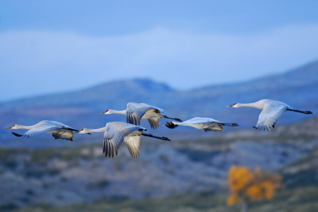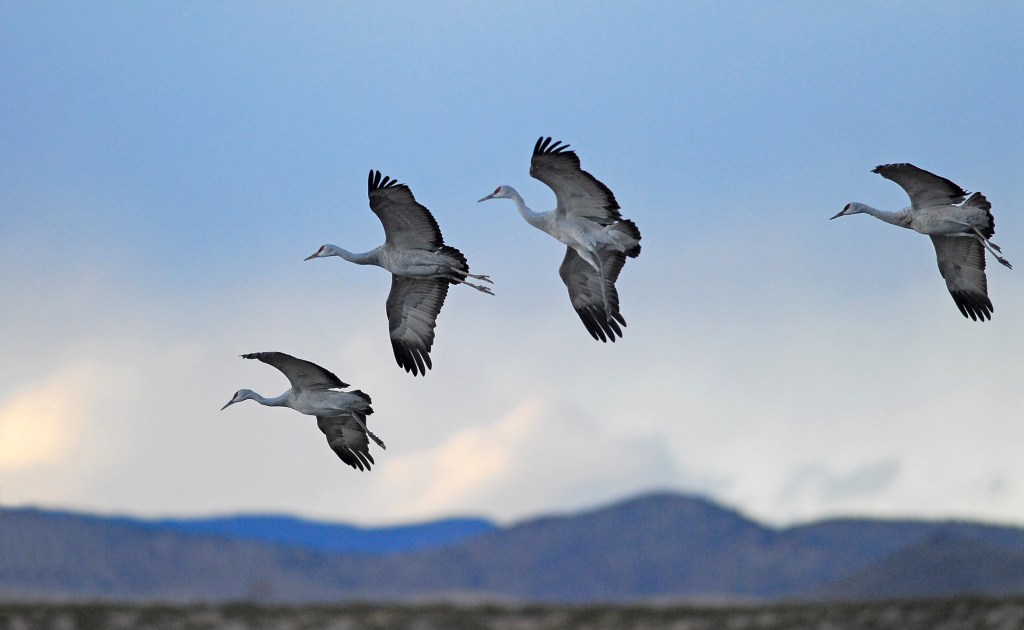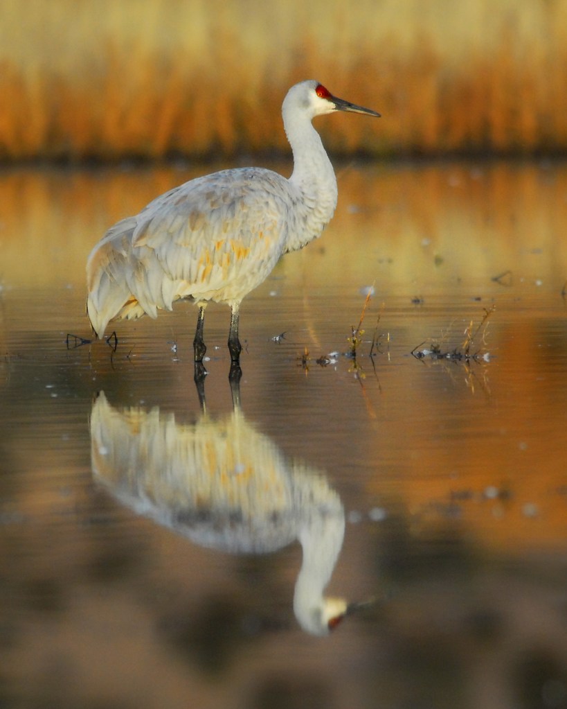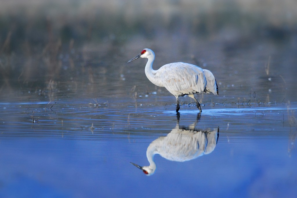 Bosque Del Apache is another truly magical destination. This preserve is located just south of Socorro New Mexico. The Chupadera Mountains to the west and the San Pascual Mountains to the east provide marvelous backdrops for photos and there’s something very special about that southwest light. Beginning around the end of October, thousands of Snow Geese, Ross’ Geese, and Sandhill Cranes migrate from northern climes and spend the winter in these marshes. In the evening, they congregate in water to protect themselves from predators. Near dawn, the geese take off en masse in search of fields throughout the Middle Rio Grande Valley to feed for the day. Smaller groups of Sandhill Cranes then leave the safety of the water for the same reason. Arriving pre-dawn, setting up on the banks of the marsh, just as the sun is rising, you’re witness to groups of 2,4 or 10 cranes at a time lifting off into the golden light. Getting a chance to see hundreds of Snow Geese take to the skies all as one is almost worth the trip in itself. Come back just before sunset and watch the scene play out in reverse as groups of these ancient birds majestically hover over the mountain backdrop and slowly lower themselves into the marsh for the evening.
