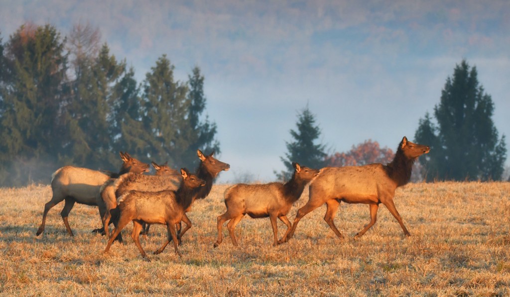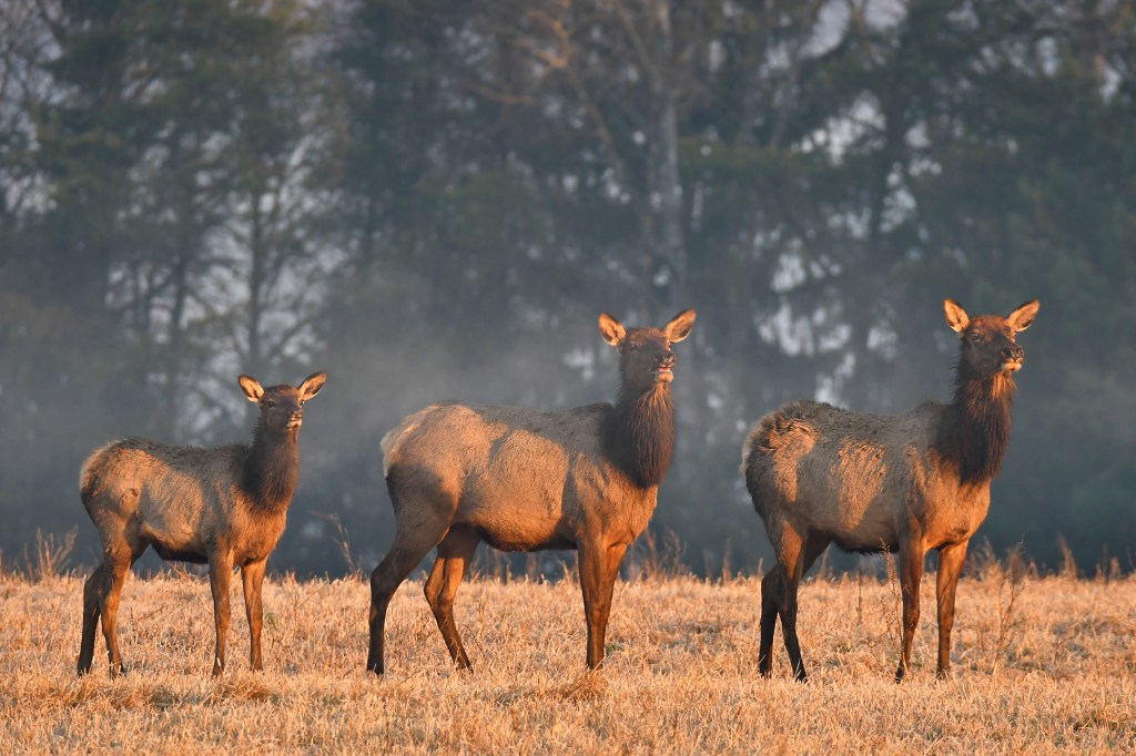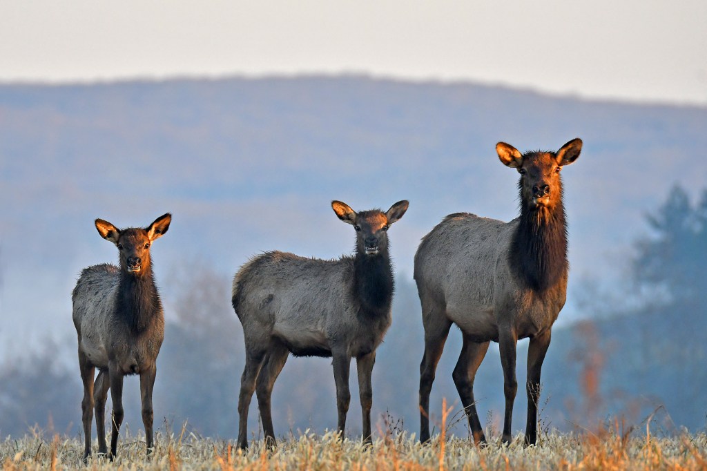 There’s a big difference between luck and chance. These days it’s pretty easy to determine driving distances and times. I figured if I leave my house at 3 AM I should get to Benezette Pennsylvania by about 6:30. The sun should rise about 7:00. I’m on my way to Conowingo Dam in Maryland to photograph eagles but a slight detour gets me to Elk Drive in Benezette. Between 1913 and 1926, Rocky Mountain Elk were introduced by the PA Game Commission. It is now estimated that around 900 wild elk live in PA, ranging over 300 miles and covering parts of seven counties. I pull into the parking lot of the Winslow Viewing area, the only car in the lot this morning. I’ve heard that the elk can often be seen grazing in farmer’s fields but this looks like a nice spot too. Rolling hills, pine trees forming a line in the distance. I grab my gear and start walking down the gravel road in the chilly darkness and then stand and wait for the sun to rise. It’s a beautiful, foggy morning and as the sun just begins to crest the hills to the east, a herd of about 20 elk come up over a rise, pass directly in front of me, cross the road, and disappear down into a ravine. I was there just a little over an hour. So it wasn’t by chance that I found myself in that position just as the animals made their way through that field, but I was certainly lucky as I’ve been back twice since and come back home with nothing to show for it.
