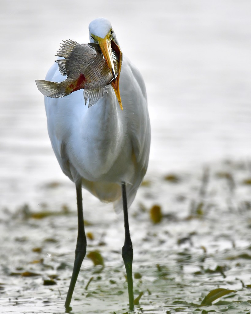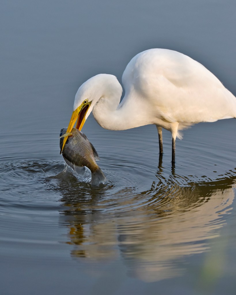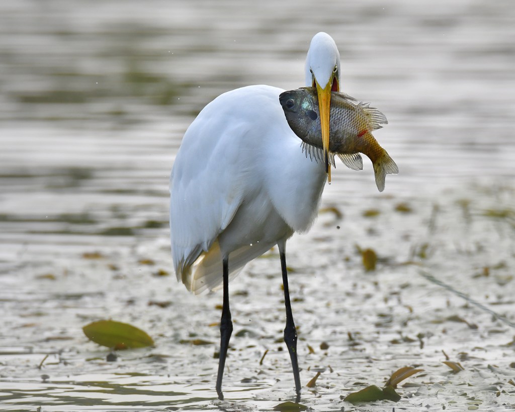 I returned a few hours before sunset and found this crazy bird more cooperative than ever. He wrestled with this Bluegill all night but it proved too big to swallow and he never did get it down.