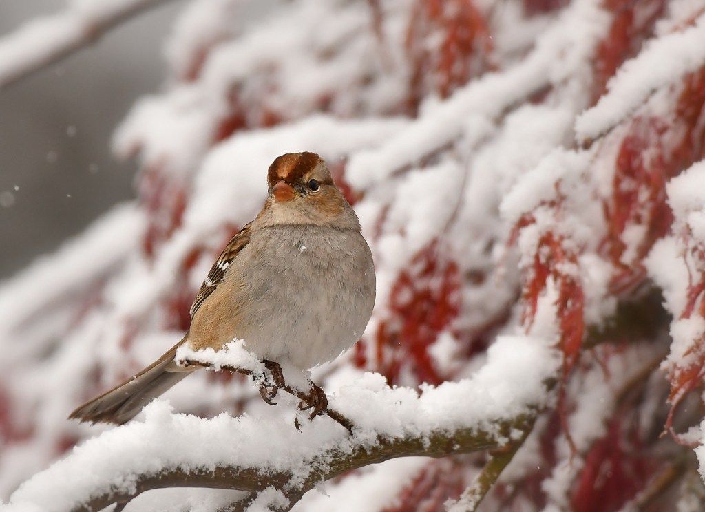 The first day of December brought the first snow of winter and a little different look to the birds in the backyard.