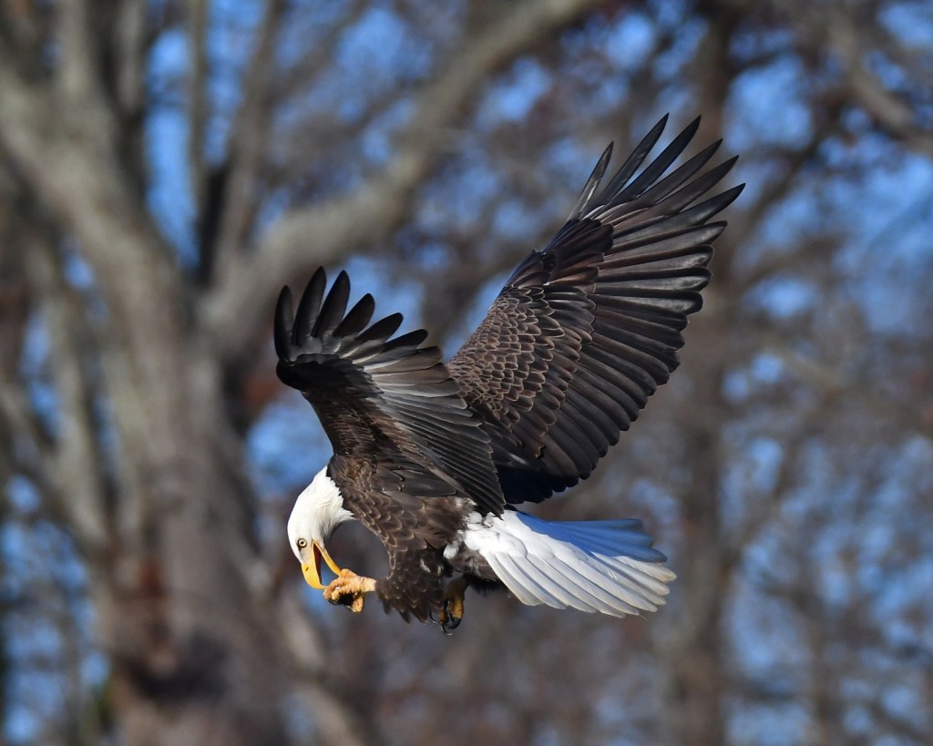 At a place like Conowingo Dam in Maryland, the water below the dam doesn’t freeze so many birds from further north congregate here in the winter. It’s not unusual to see a bird make a catch in the river and then as if out of nowhere, two or three birds will descend and the chase is on.