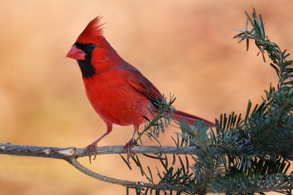 I’ve been trying to get a decent shot of the male cardinals in the yard but they tend to feed on the ground and when they are in the branches they bury themselves deep so it’s hard to get a clean shot. Taking advantage of the last bit of sun and a perch I had set up earlier in the week paid off this afternoon. With the sun coming in over my shoulders, the shrubs behind the perch were lit up perfectly. All I needed was my cardinal. After about 2 hours of watching chickadees and juncos hopping on and off this branch, the male cardinal finally landed and gave me about 8 shots before jumping down to the ground.