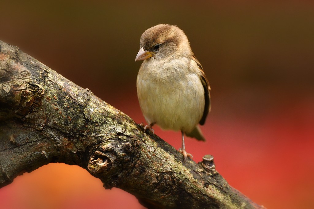 The background here is provided by some fall leaves and a Japanese Maple in the backyard.