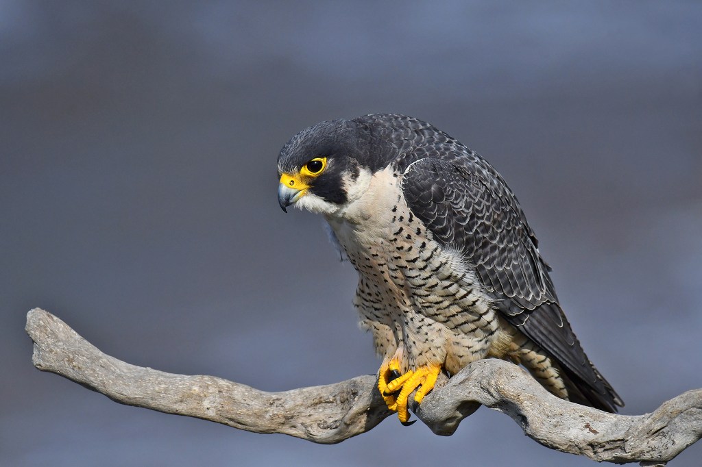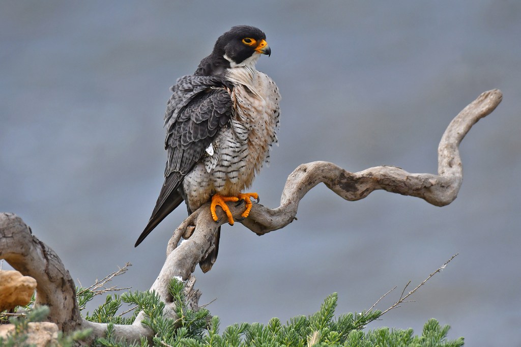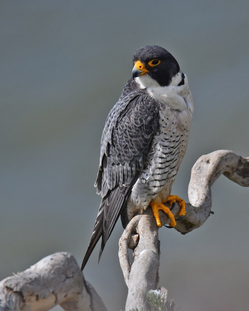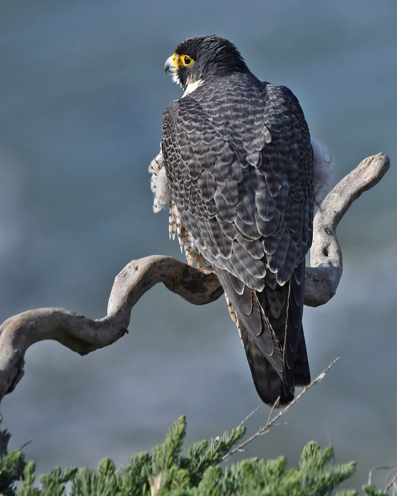 The 100 Foot cliffs in San Pedro, CA provide perfect dwellings for nesting Peregrine Falcons. I made the trip to San Pedro from Monterey Hills twice on my most recent trip to Southern California. It’s just about an hour drive to the coast and leaving the house at 5:00 AM pretty much assures an easy drive before the LA traffic heats up. I spent a total of about 8 hours between the two days waiting and hoping for these birds to land on their favorite perch. The total time spent actually photographing the birds was around 30 minutes. The first four images are of the male and the rest are the female.