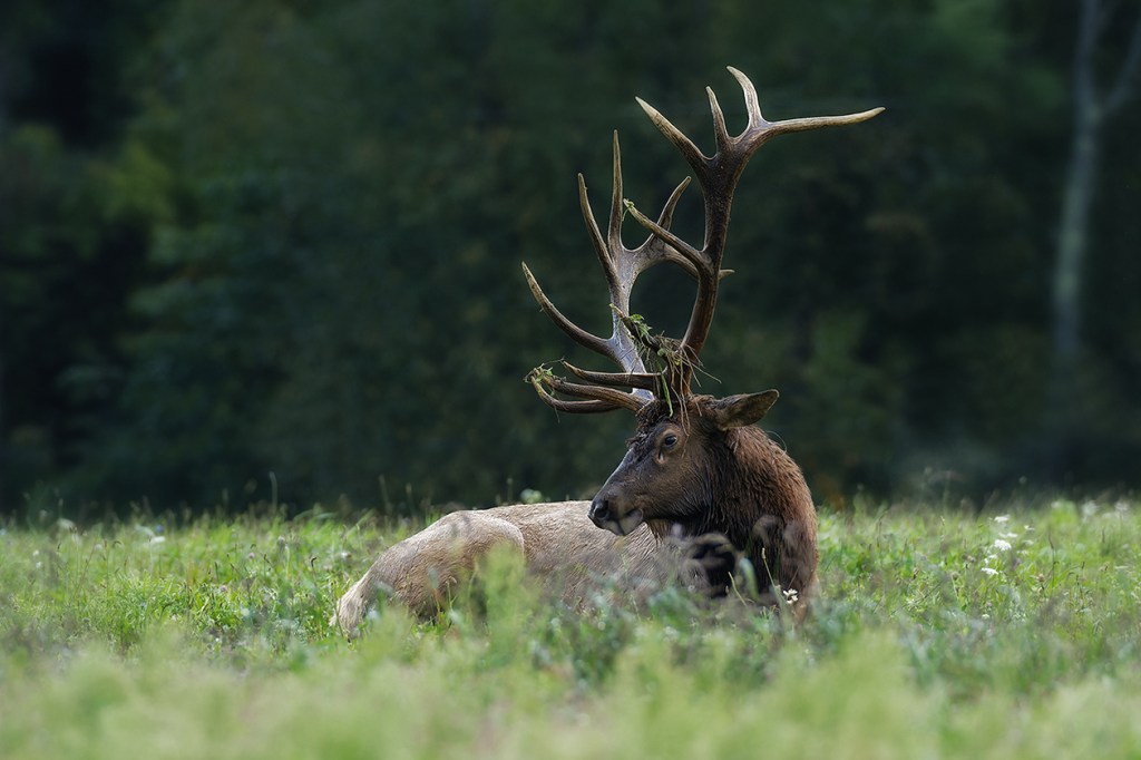 I spent one evening and one morning photographing Elk in Benezette PA. The population of approximately 1200 animals is dispersed over 400 square miles so finding them in the right light, with a pleasing backdrop, and close enough is a hit or miss proposition. I missed more than I hit spending two hours at a location I was hoping to see them, beginning a half hour before sunrise, and coming up empty. The rut begins around Labor Day and continues till about the end of October so these magnificent bulls are very active this time of year.
