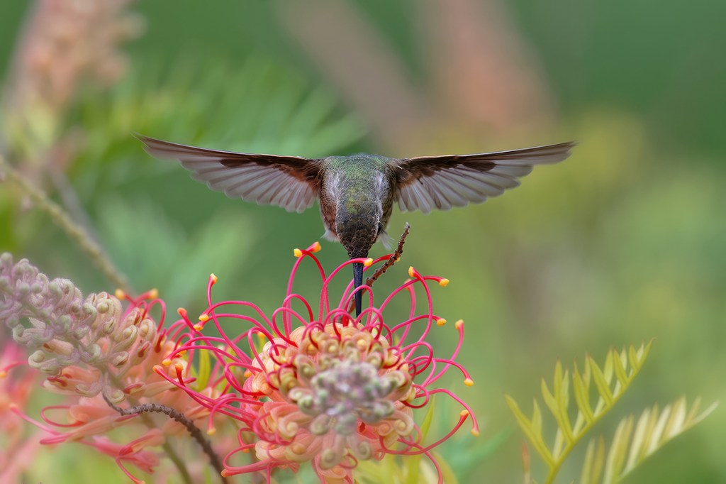 I never get tired of shooting hummingbirds. They always give different looks and poses but the challenge is finding them in a pleasing habitat.