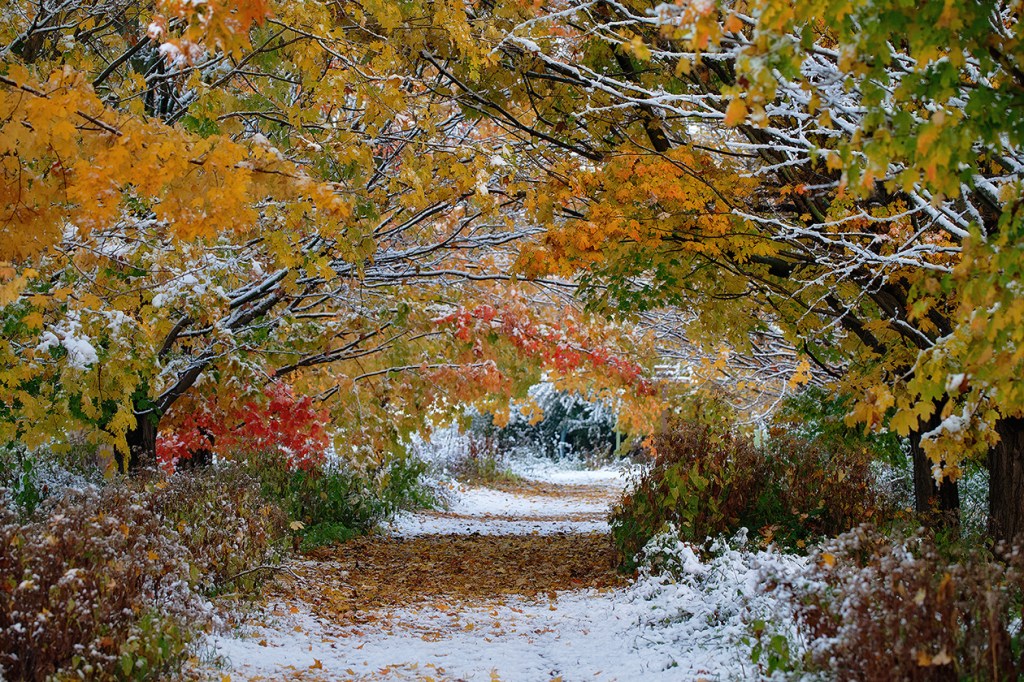 I had my gear packed up and ready for a morning walk at Tift Preserve the evening before. What I didn’t know was I’d be waking up to the first snowfall of the year. The heavy, fresh snow clinging and weighing down the branches added to the remaining fall colors.